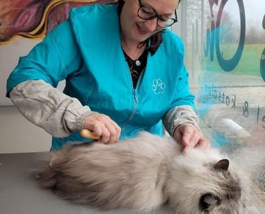Ik werk met veel liefde en geduld, helemaal katvriendelijk en zonder dwangmiddelen. Jouw kat is bij mij echt koning(in)! Ik benadruk dit graag, want een ontspannen en blije kat is het allerbelangrijkste.