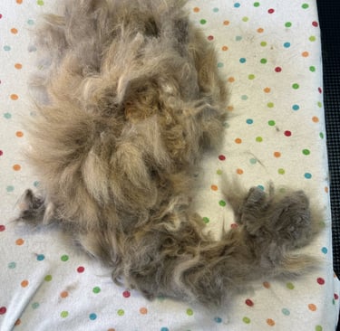 Daarna ga ik voorzichtig aan de slag met de kam en/of tondeuse om de vacht weer heerlijk vrij te maken van klitten en problemen.